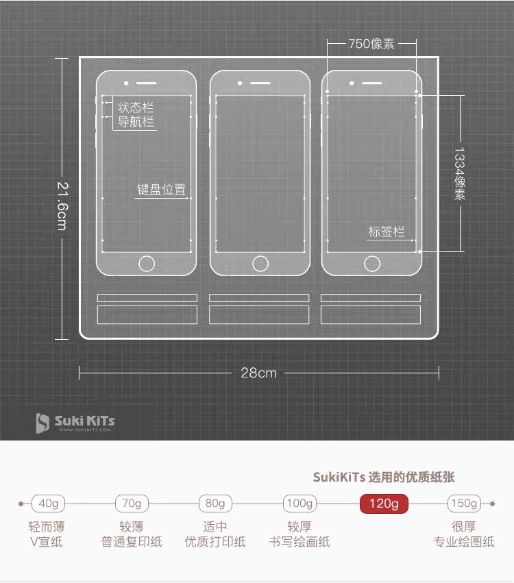 SukiKiTs iPhone6紙上原型草稿繪圖網(wǎng)點本(交互界面UI設計模版)