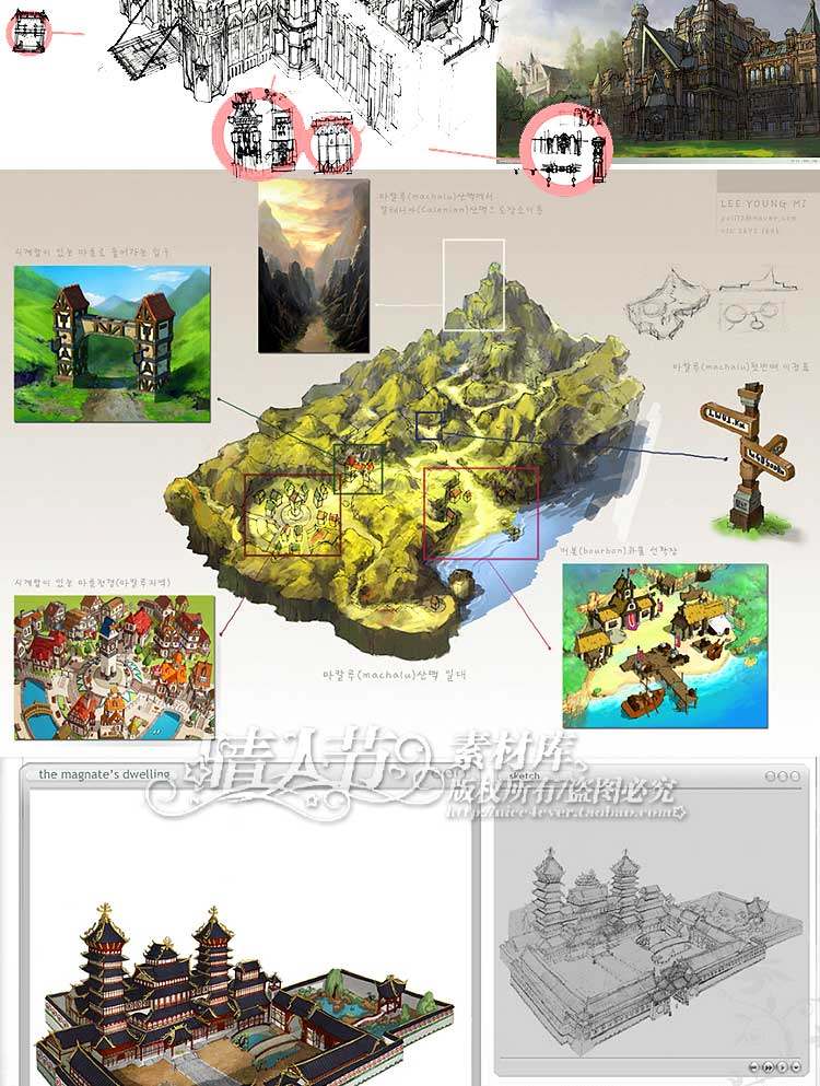 韓國(guó)游戲場(chǎng)景原畫素材 建筑設(shè)計(jì)線稿原稿圖片 動(dòng)漫CG美術(shù)設(shè)定資源