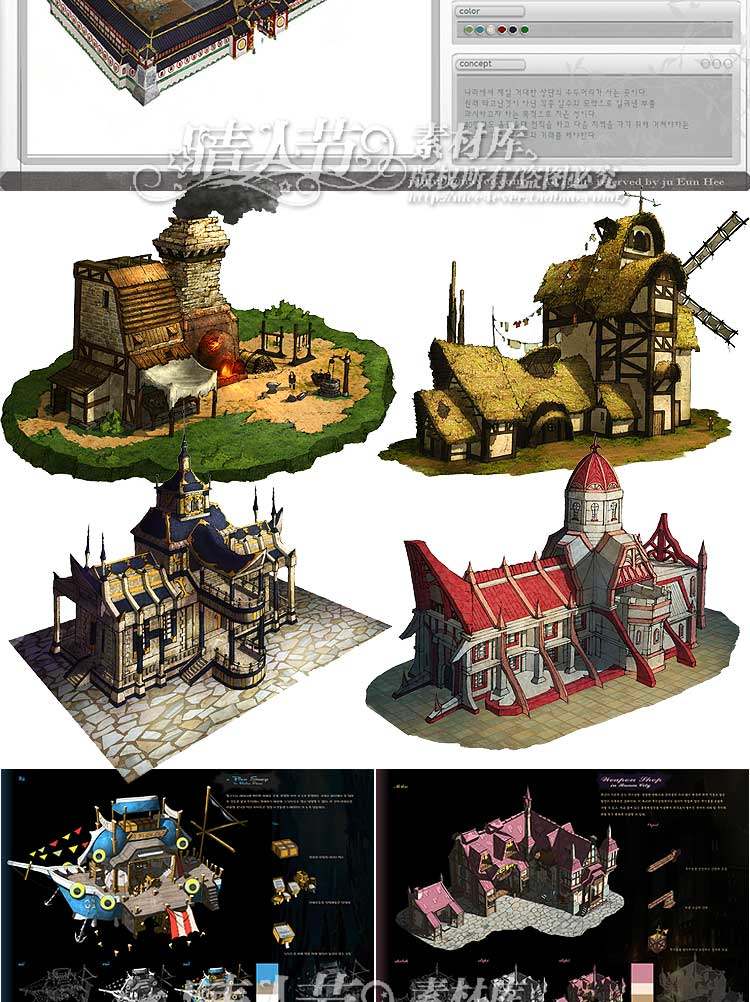 韓國(guó)游戲場(chǎng)景原畫素材 建筑設(shè)計(jì)線稿原稿圖片 動(dòng)漫CG美術(shù)設(shè)定資源推廣熱賣行情