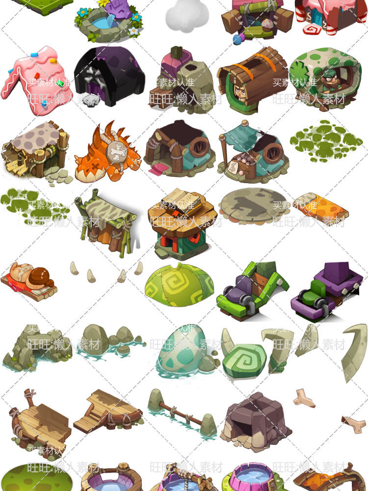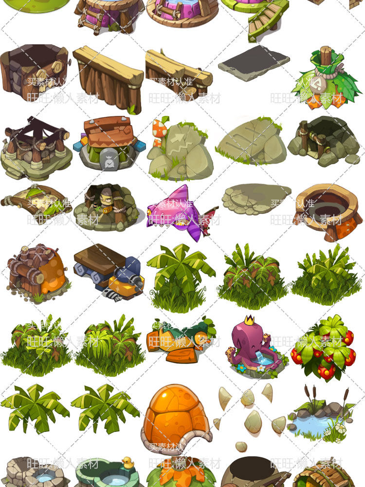 手游游戲素材資源 Q版可愛場景背景地圖元素 房屋花草地塊 0162價格行情
