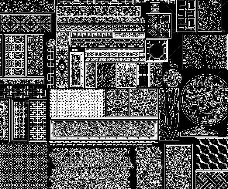 CAD圖案中式歐式花紋圖紙大全鏤空雕花模型圖庫隔斷室內(nèi)設(shè)計素材