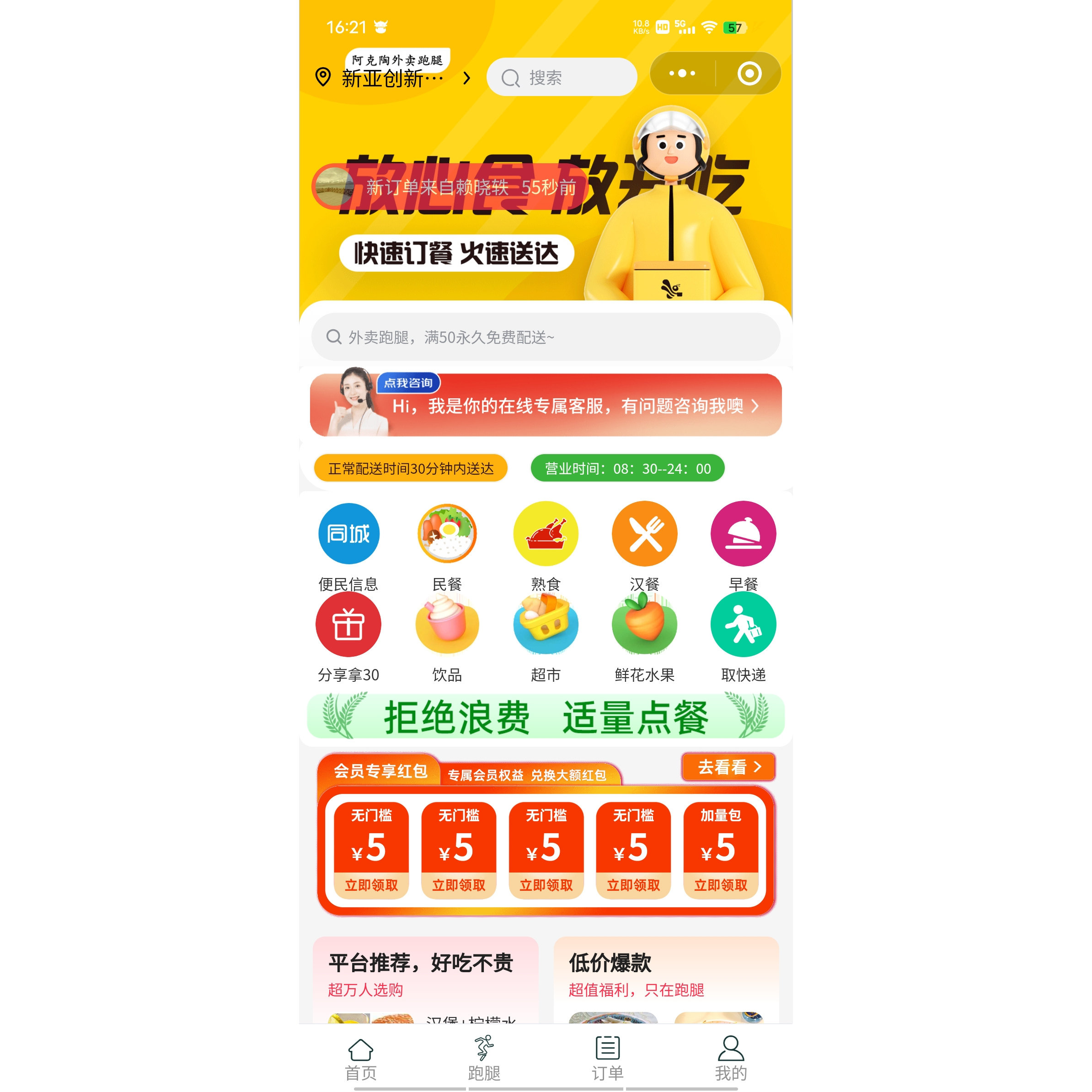 外賣(mài)小程序開(kāi)發(fā)跑腿同城配送掃碼點(diǎn)餐小程序餐飲團(tuán)購(gòu)校園點(diǎn)餐商家