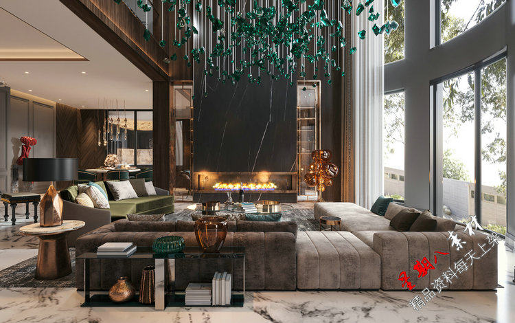 c445南昌別墅私宅室內(nèi)設(shè)計高清效果圖CAD施工圖紙物料書意式輕奢