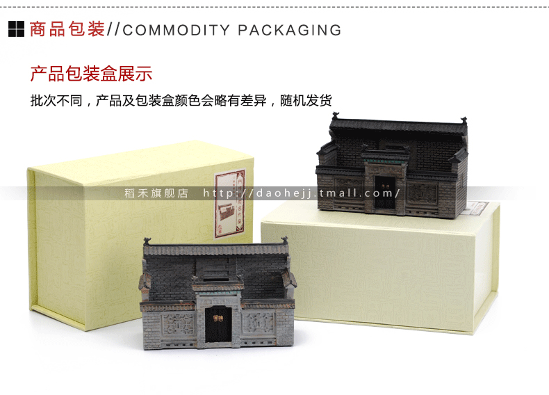 特別說明:此系列產(chǎn)品都是以各地特色建筑為原型設(shè)計制作而成,為了還原原建筑的特色,某些產(chǎn)品表面故意做的有點(diǎn)舊的感覺,不是質(zhì)量問題或者做工問題,適意為之。試想能用少幾個顏色就作出的產(chǎn)品,何必再費(fèi)事多涂一點(diǎn)其他顏色呢,比如竹葉上的黃色,墻壁上的泥土色……,此產(chǎn)品雖然只是個小模型,但是也力求真實(shí)的。所以請看清圖片和描述,以免買到不如意的產(chǎn)品哦!