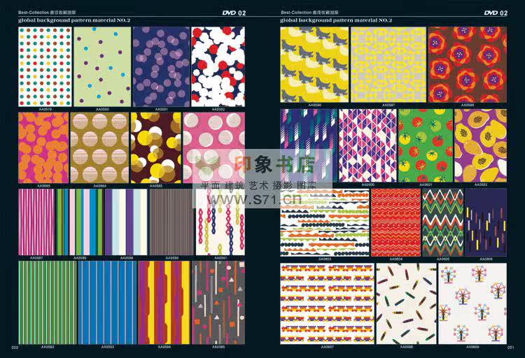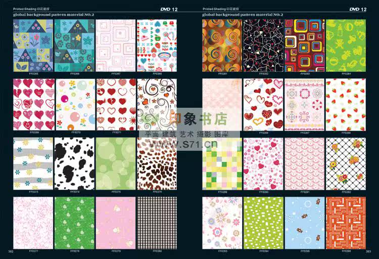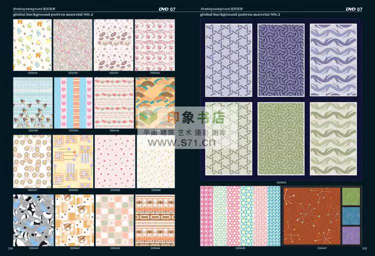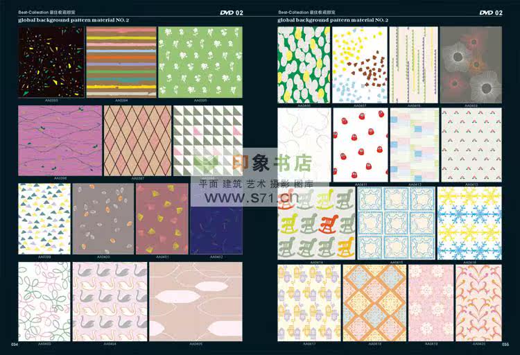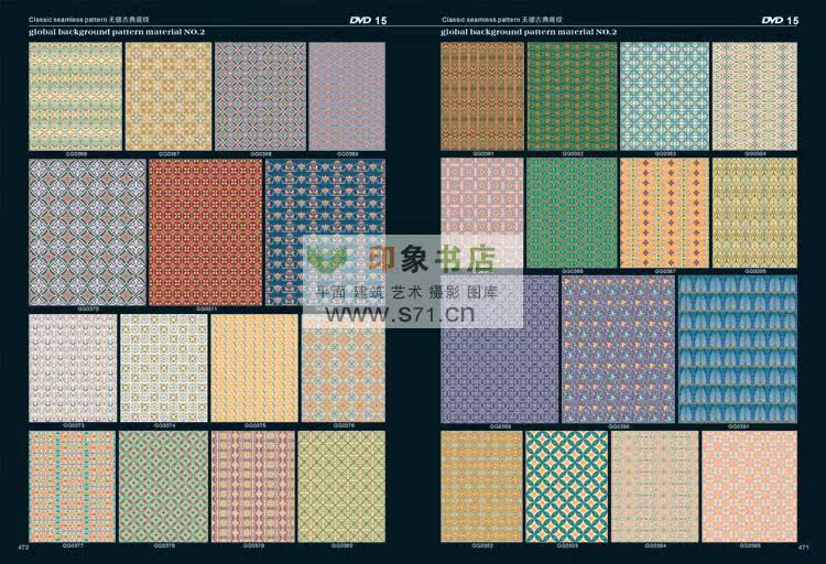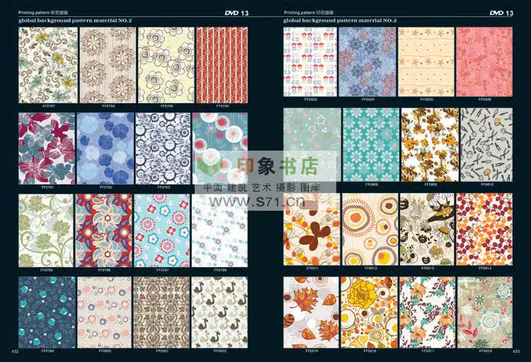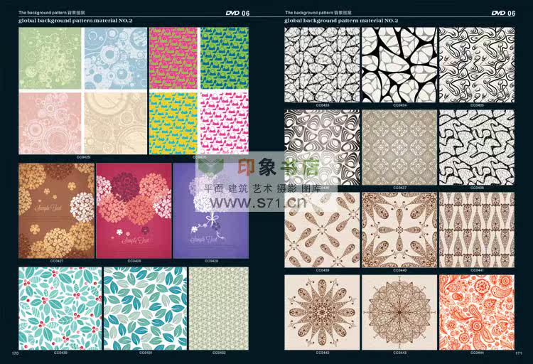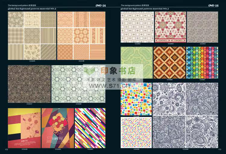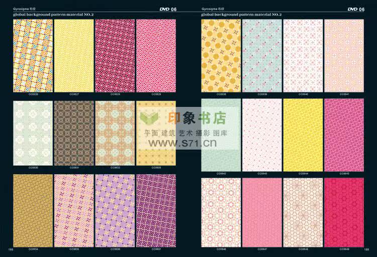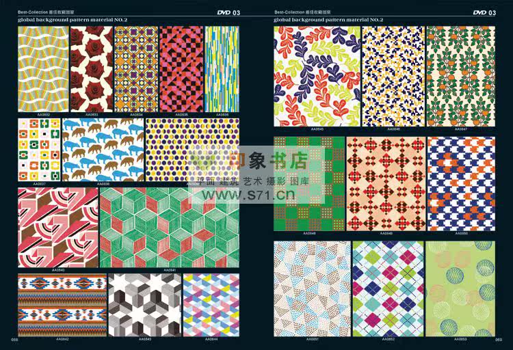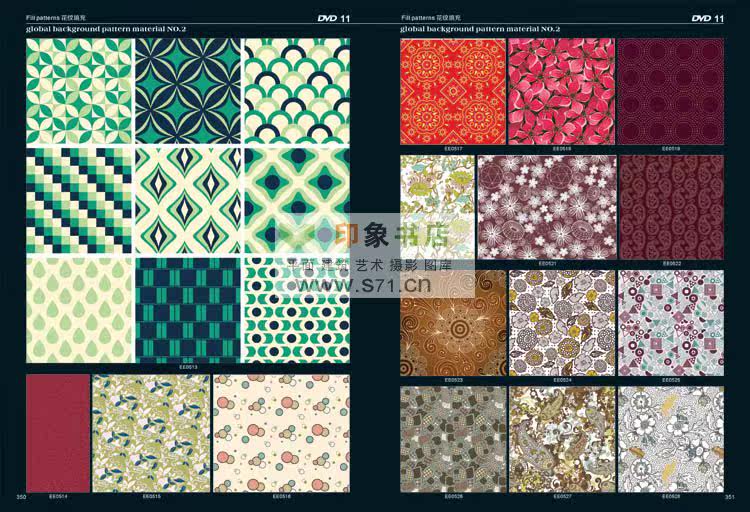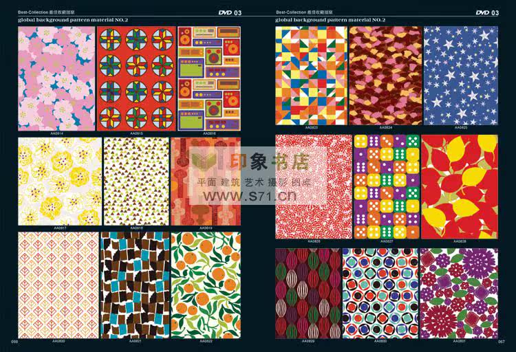 <<PATTERN Background material NO.2>> edition after the introduction of new pattern material collection. From top designer patterns around the world, including in autumn and winter, and the fringe pattern, the best collection pattern, spring and summer pattern, woven patterns, modern popular patterns, patterns in children's wear, simple and natural patterns, flowers and leaves design, fashion design, hand drawn illustration, background pattern, linen, background, flower pattern, red pattern, cartoon, Africa decorative pattern, retro pattern, pattern filling, printing shading, prints, T shirt pattern, seamless classical shading, anti-counterfeiting pattern, dermatoglyphic pattern, exquisite packaging, designers, costume company, printing factory, rare collections! Hardcover 519 page album +16DVD (EPS AI CDR)