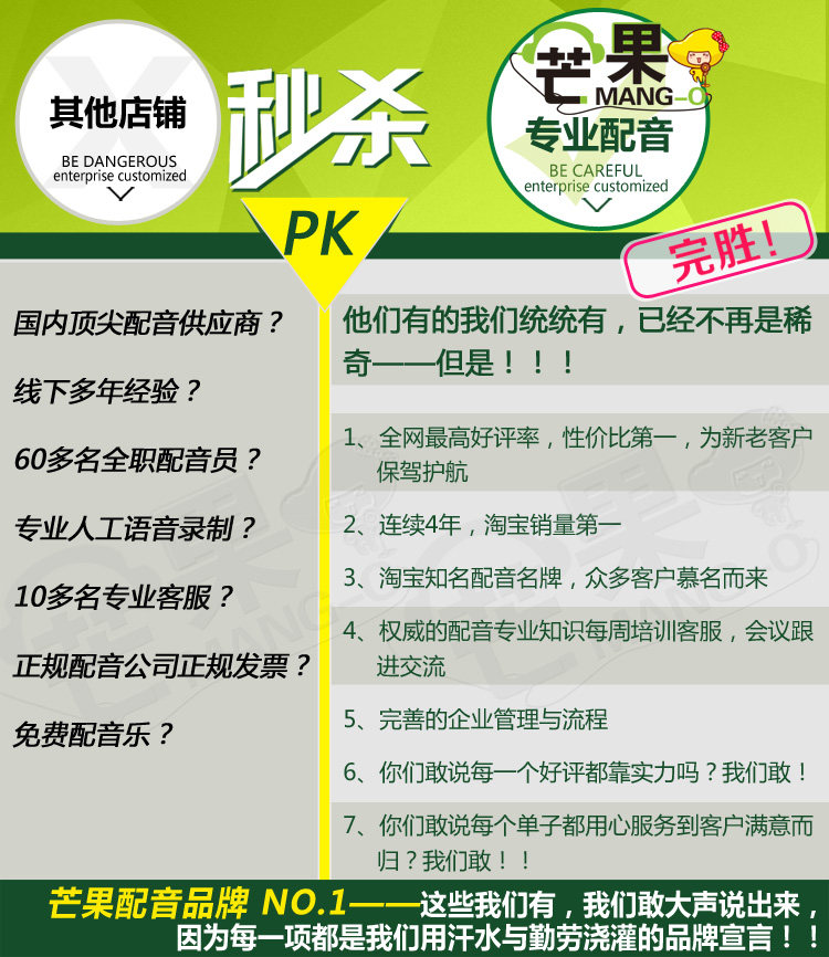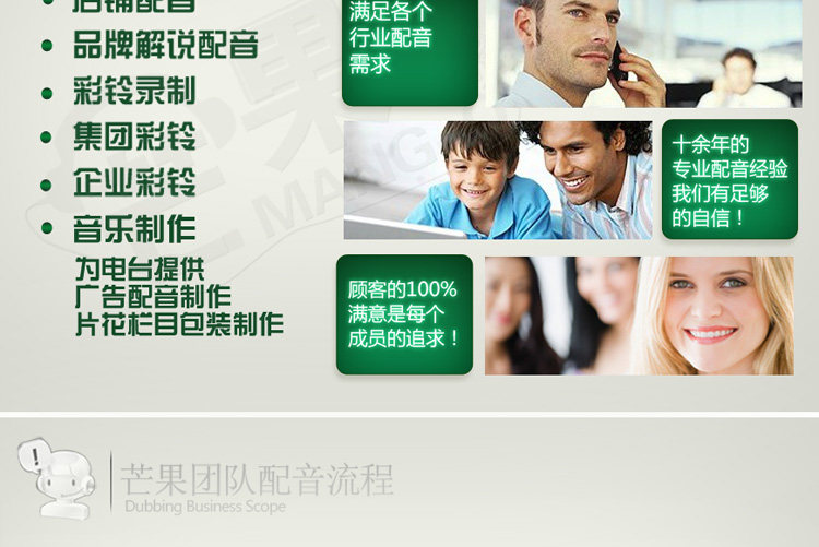 实体公司 / 专业素养 / 品质保障  成就客户就是就是成就芒果配音!