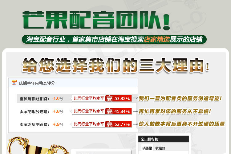 欢迎前来网上商炽告/多媒体配音-服务市场类实力旺铺,选购芒果专业配音服务 专题片配音 广告配音录音 叫卖配音男声女声,想了解更多芒果专业配音服务 专题片配音 广告配音录音 叫卖配音男声女声,请进入oct_baby的芒果配音服务实力旺铺,更多广告/多媒体配音-服务市场商品任你选购