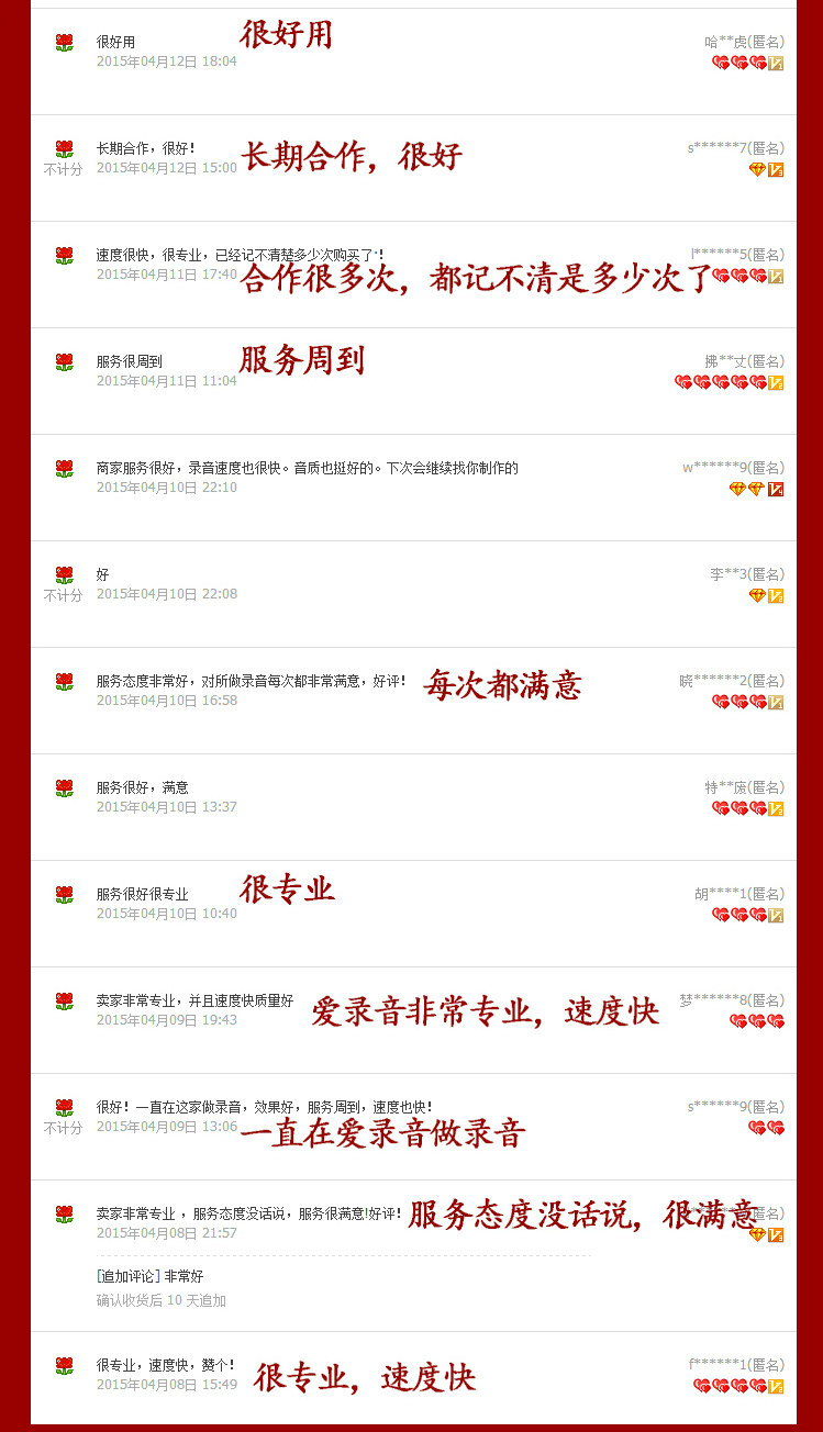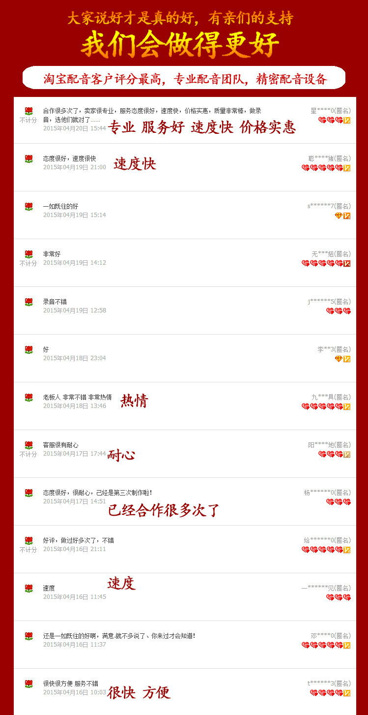 亲,我们配音是(咨询特价)起录哦,免费加1首背景音乐,好评再送1首背景音乐呦~