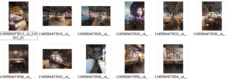 资料名称:《复古工业后现代咖啡店餐厅实景效果图素材室内装修设计方案参考图》