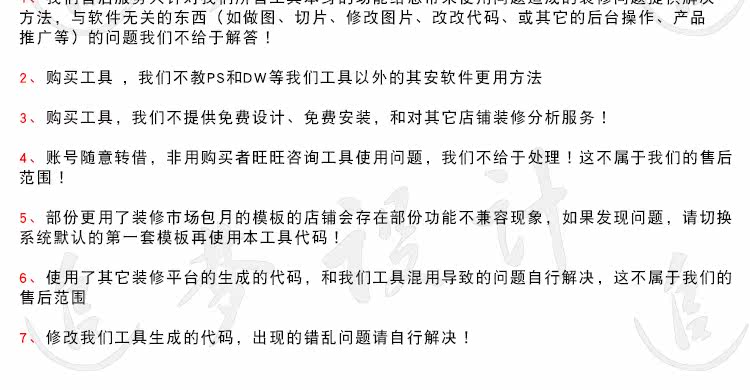 寶貝名稱 | 追夢設(shè)計(jì)店鋪在線裝修工具 | 注意事項(xiàng) |