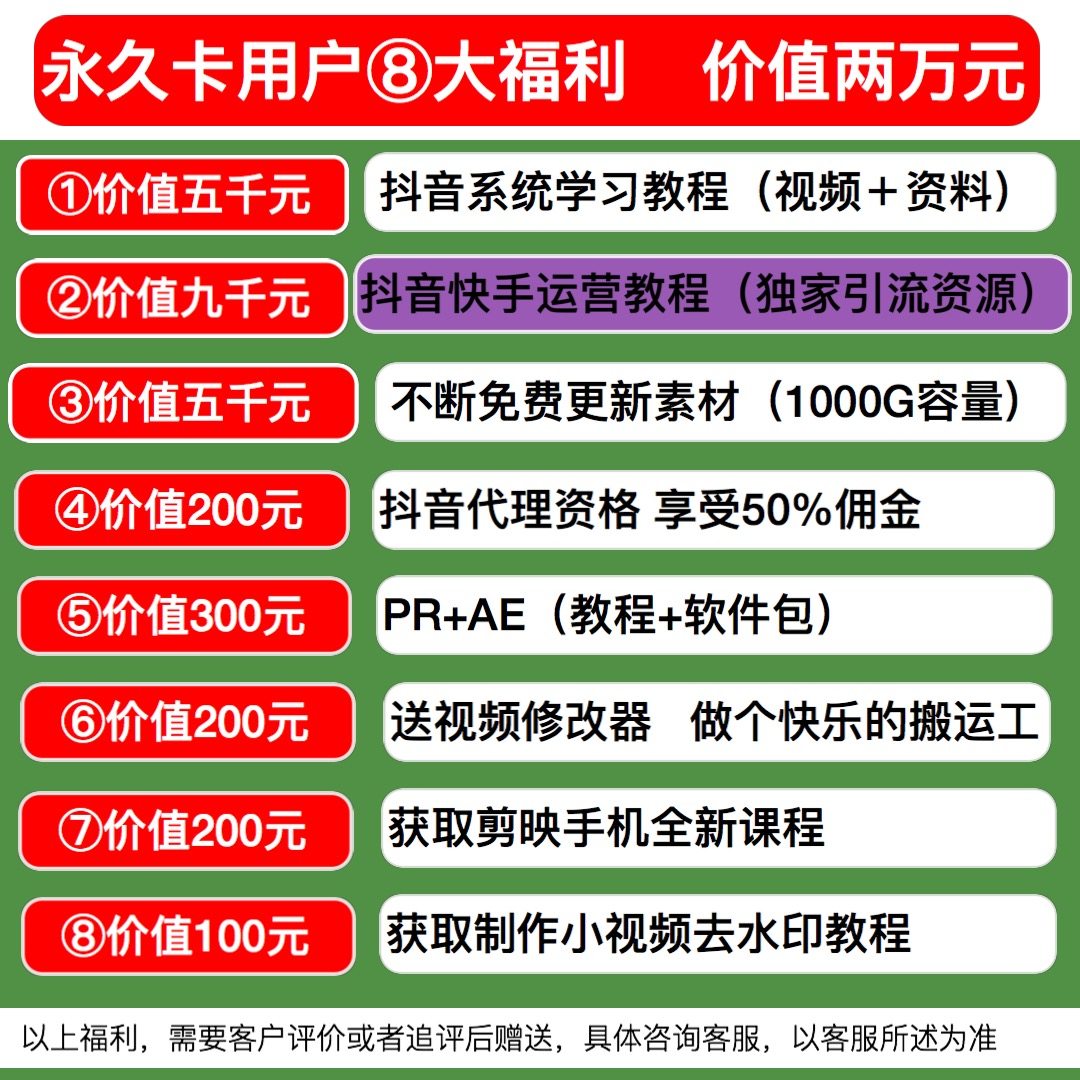 原價(jià)(咨詢特價(jià))年卡(咨詢特價(jià))包含:綠幕直播教程+教程話術(shù)推廣+1000G素材視頻