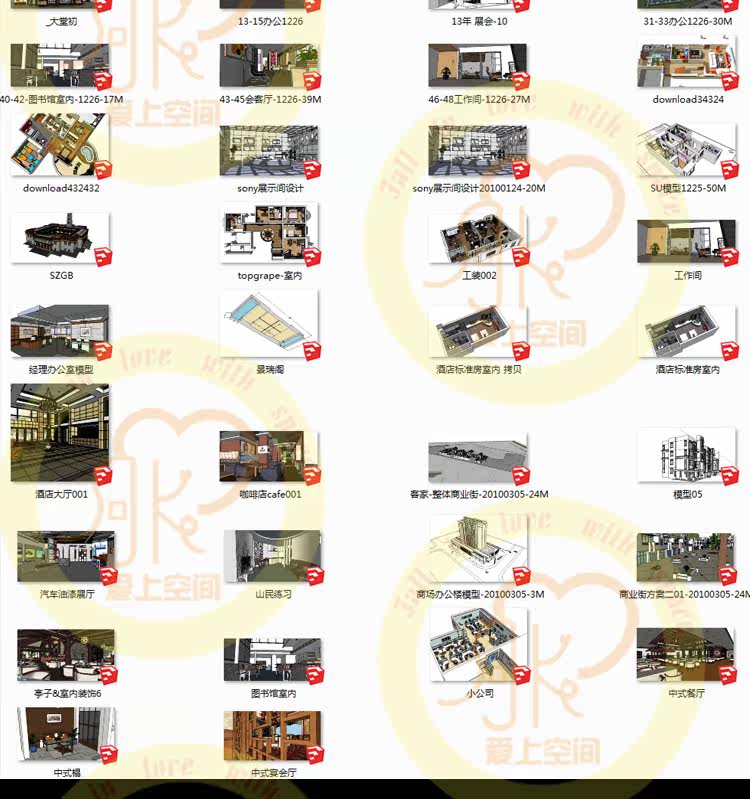 #非常新SU草图大师SketchUp(SU)家装/工装室内设计整体模型库推广热卖行情