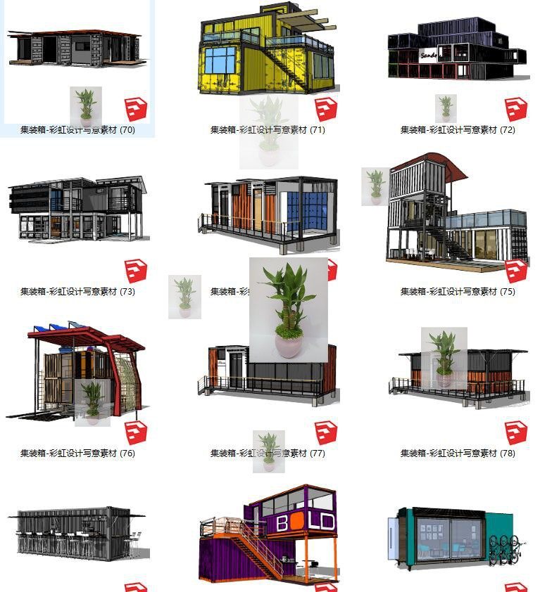 sketchup工業(yè)風格廢舊集裝箱改造景觀室外創(chuàng)意建筑草圖大師SU模型