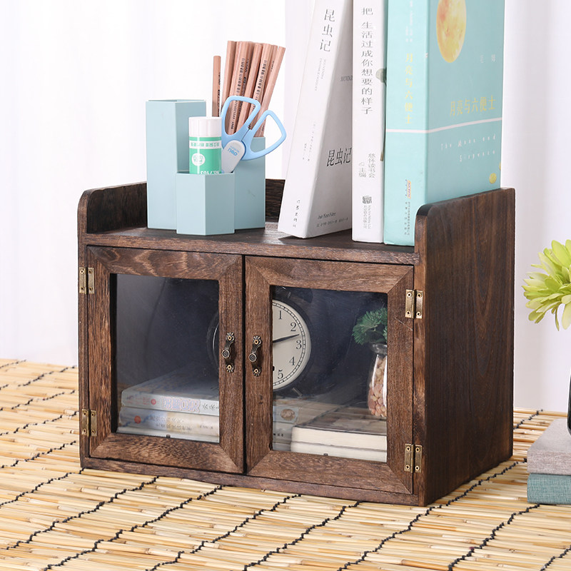 實(shí)木桌面收納盒防塵化妝品儲(chǔ)存柜手辦擺件展示柜玻璃茶具柜小書(shū)櫥