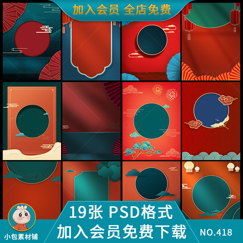中國風國潮現(xiàn)代新中式古典扇子祥云線條海報背景PSD設(shè)計素材圖片