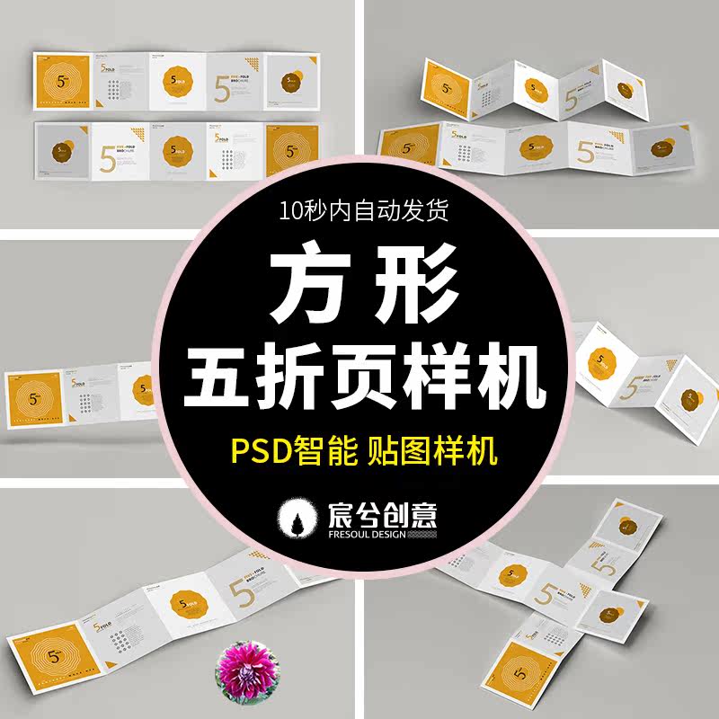 N7方形五折頁宣傳畫冊廣告智能貼圖樣機(jī)VI展示效果圖PSD設(shè)計(jì)素材