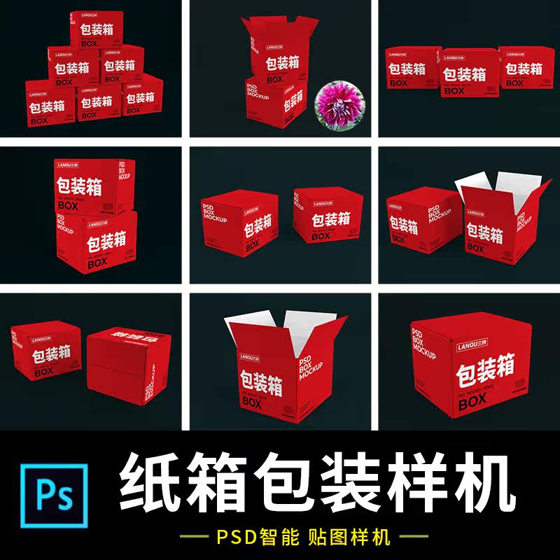 N116物流快遞打包紙箱包裝貼圖樣機(jī)瓦楞紙盒VI展示效果PS設(shè)計(jì)模板