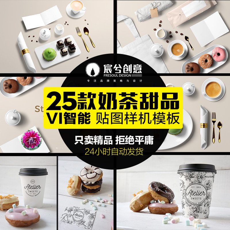 N27甜品奶茶咖啡VI品牌智能貼圖樣機西餐展示效果標志PSD設計素材
