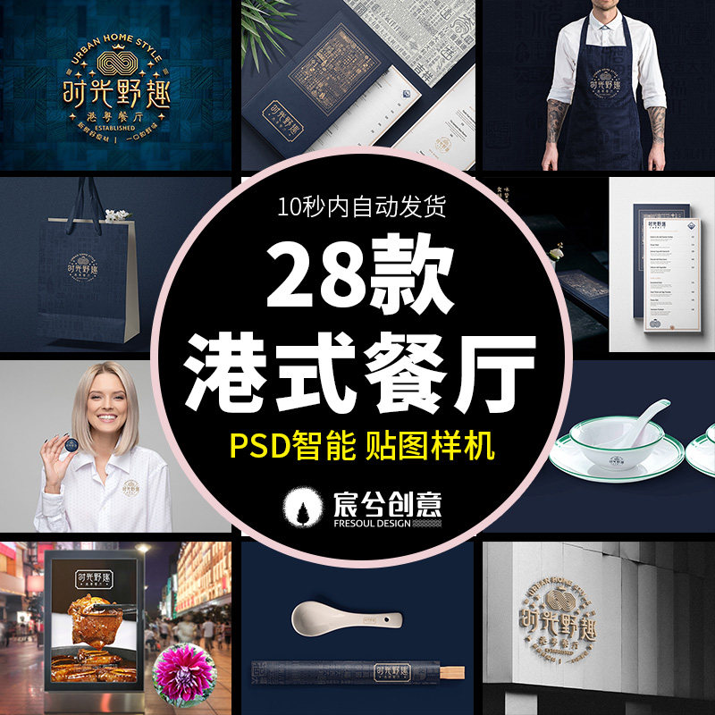 N97港式餐廳中國風餐飲VI智能貼圖樣機LOGO展示效圖果PSD設計模板