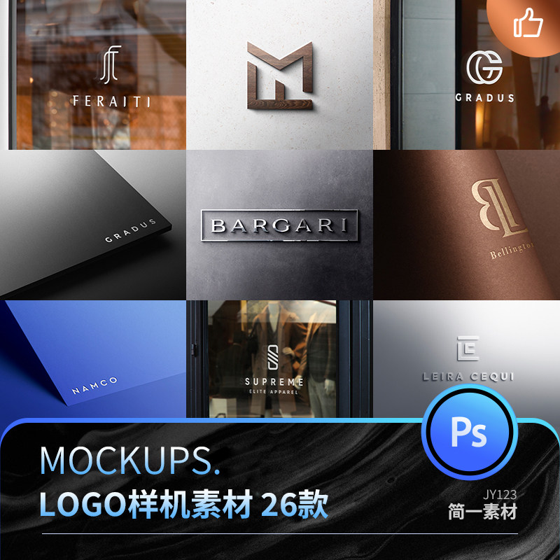3D立體VI質感燙金燙銀凹凸工藝品牌LOGO展示樣機PSD模板設計素材