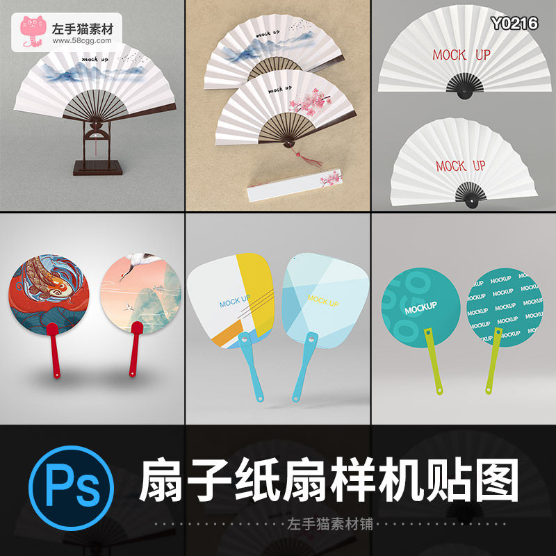 中國風紙扇折扇廣告圓扇效果圖vi樣機展示PSD貼圖設計素材模板
