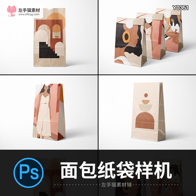 面包漢堡食品牛皮紙袋零食包裝袋樣機(jī)VI設(shè)計展示PSD智能貼圖素材