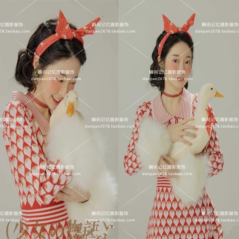 影樓工作室個人主題POLO領(lǐng)收腰港風(fēng)復(fù)古長袖長裙攝影服裝