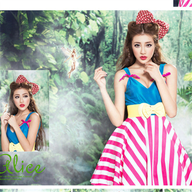 21新款影樓個人外拍小清新v領(lǐng)條紋裙影樓服裝