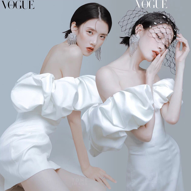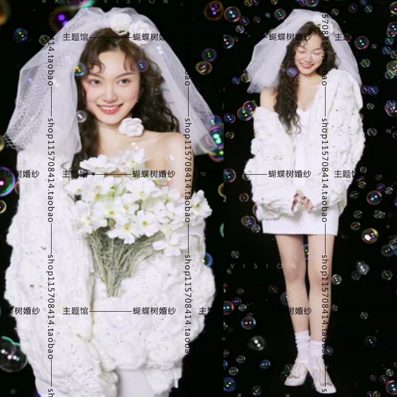 影樓個(gè)人藝術(shù)抹胸白色連衣裙粗線毛衣開衫混搭風(fēng)主題攝影服裝