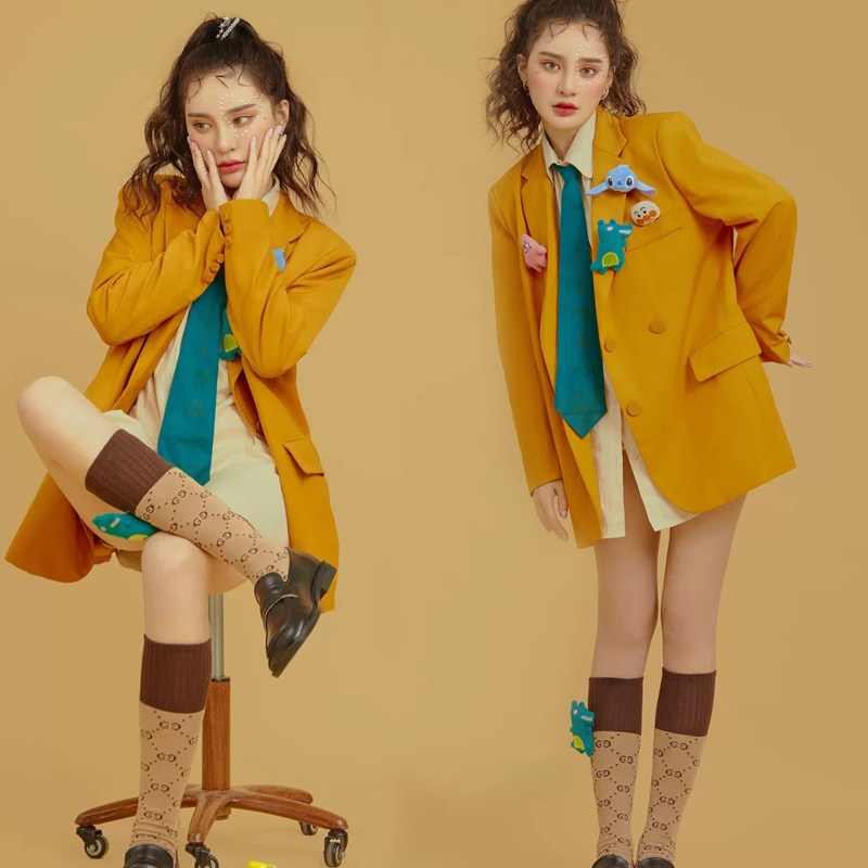 21新款個(gè)人服裝甜美學(xué)院風(fēng)主題拍照潮拍馬卡龍藝術(shù)照西裝服