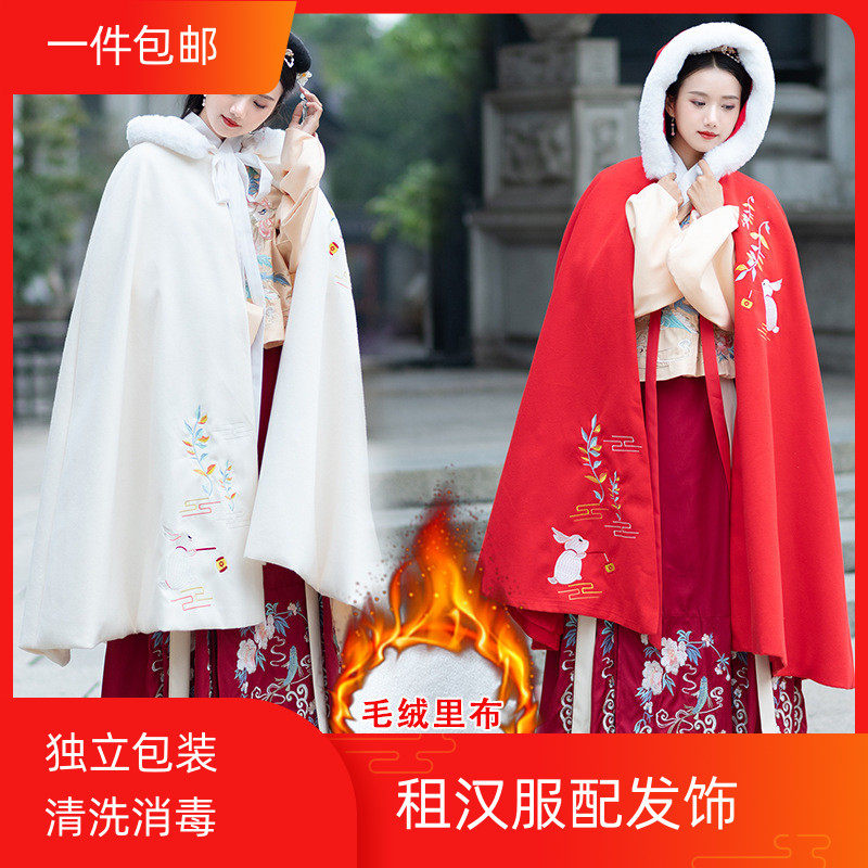 租刺繡斗篷漢服加厚加絨保暖連帽長(zhǎng)披風(fēng)外套雪景個(gè)人拍攝租賃