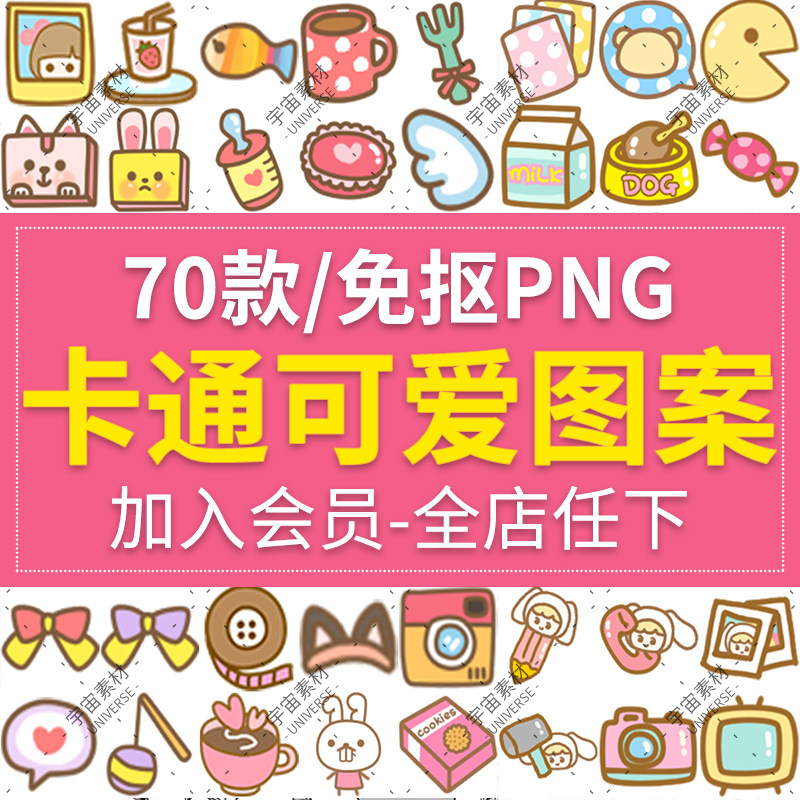 手繪卡通可愛粉紅圖標照片手賬裝飾免摳PNG圖案元素 設(shè)計PS素材