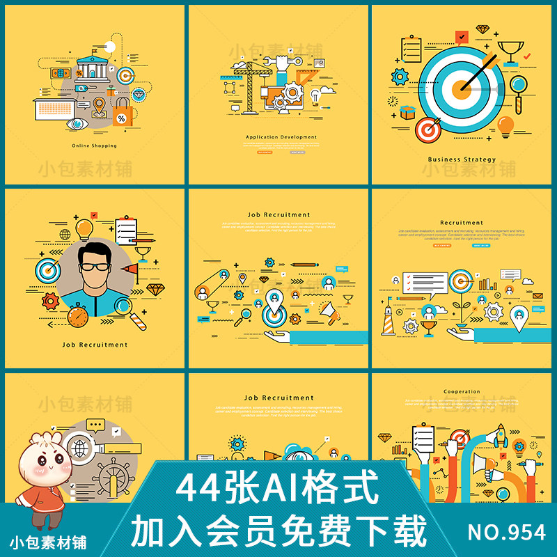 扁平卡通圖表辦公流程圖ICON圖標矢量ai設(shè)計素材模板思維腦圖海報