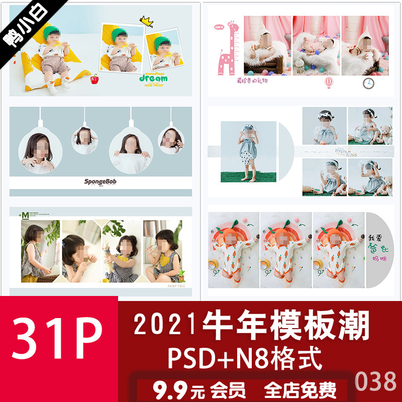 038兒童模板PSD2020潮流新品方版n8模板兒童n8軟件模板寶寶相冊