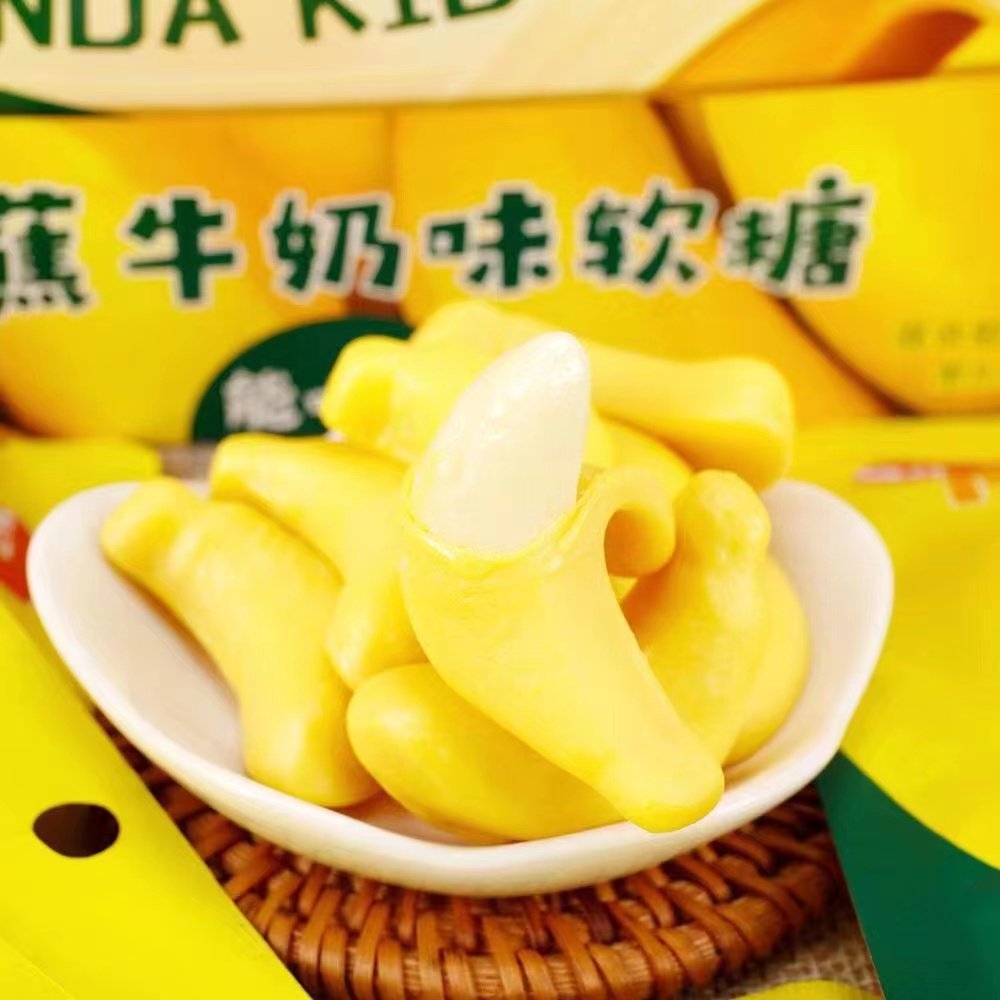 熊仔能啵皮的香蕉牛奶軟糖夾心香蕉剝皮糖網(wǎng)紅零食果汁qq橡皮帖