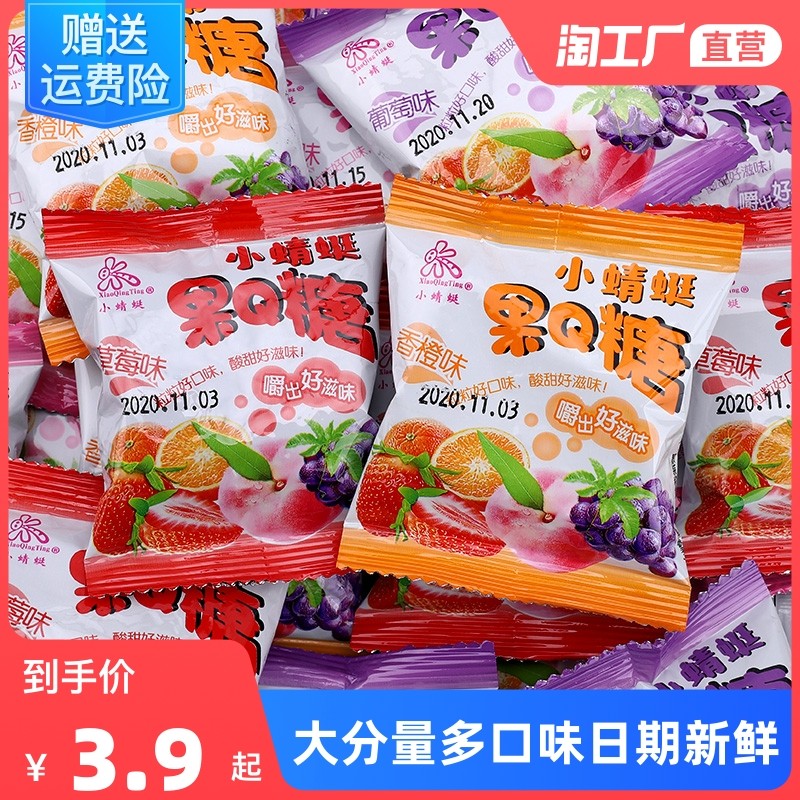 qq軟糖橡皮糖兒童零食水果糖小包裝喜帖汁糖年貨散裝稱重帖