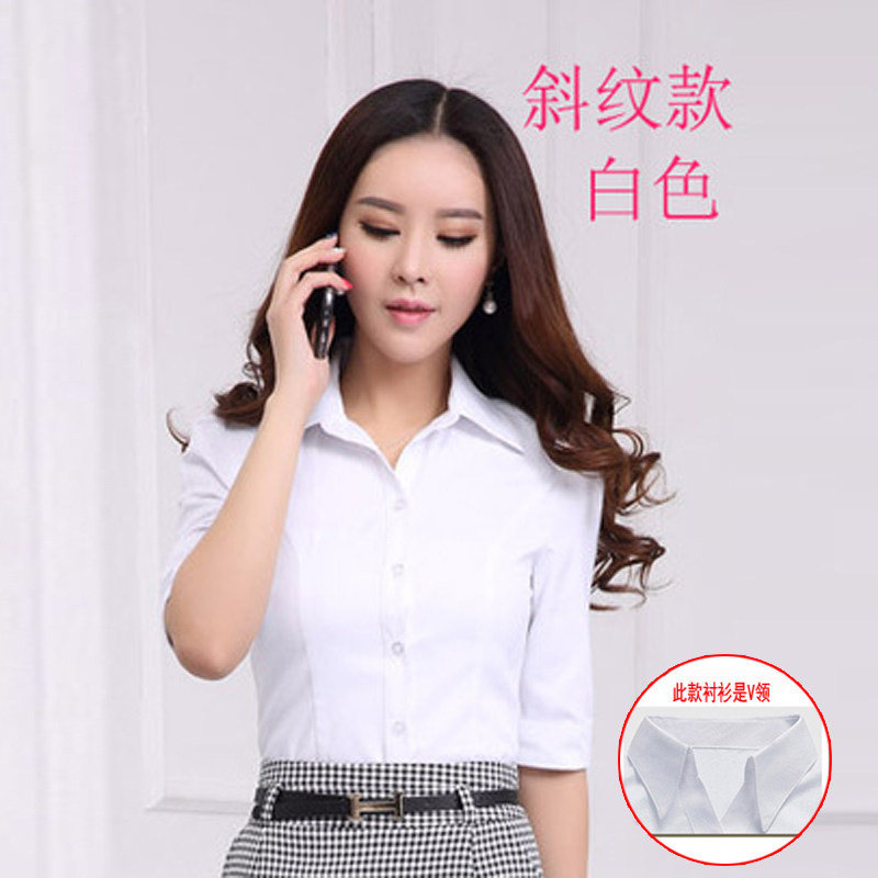 修身襯衣白領(lǐng)商務(wù)職業(yè)中袖女襯衫前臺(tái)服務(wù)員酒店超市工作服收銀員