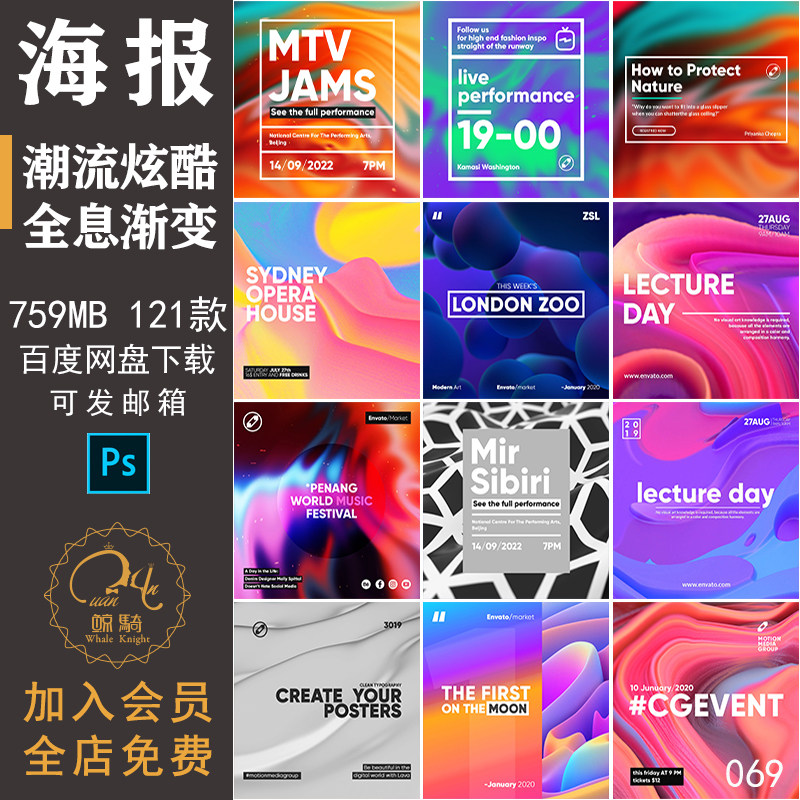 新款潮流炫酷全息漸變流體字體背景Instagram海報(bào)PSD設(shè)計(jì)素材模板
