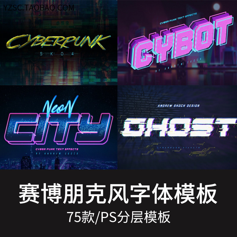 賽博朋克風(fēng)格未來(lái)科幻霓虹復(fù)古字體特效PSD分層模板 LOGO設(shè)計(jì)素材
