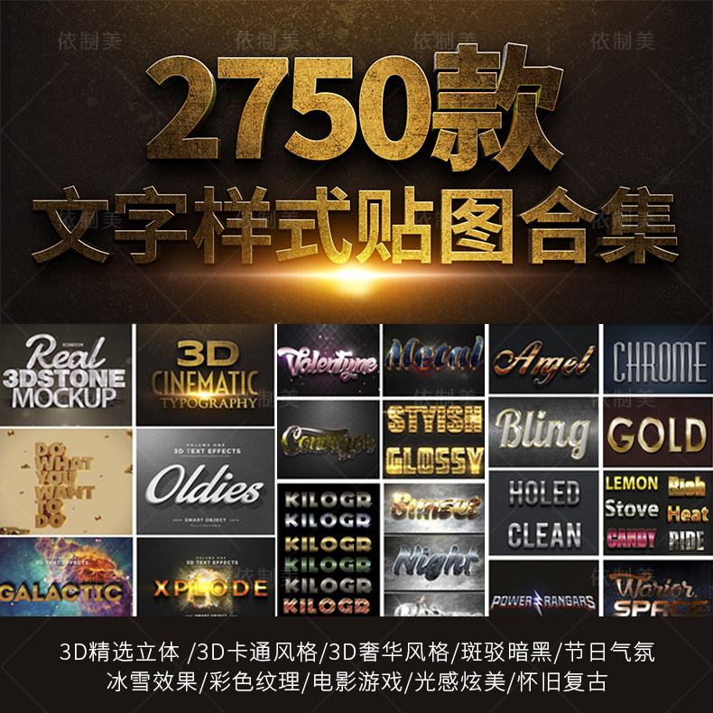 PS海報(bào)字體3D立體發(fā)光金屬效果圖層文字樣式貼圖PSD設(shè)計(jì)素材模板