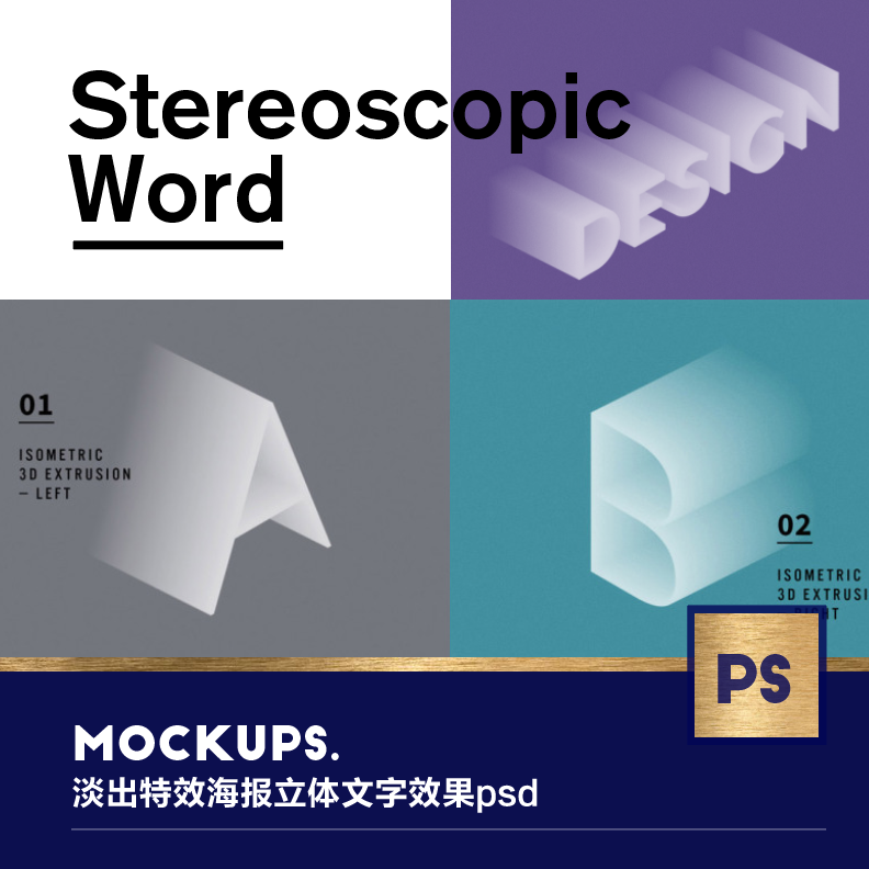 一組漸變淡出特效立體文字海報(bào)藝術(shù)字體效果psd設(shè)計(jì)素材樣機(jī)