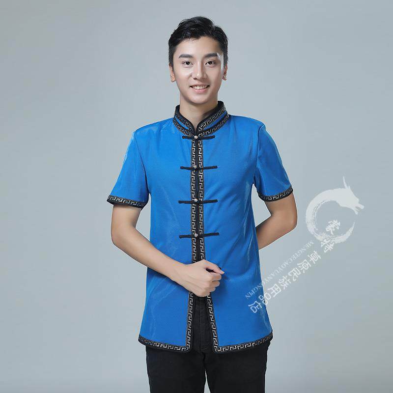 新款上衣服裝短袖男士蒙古袍蒙古族生活裝日常裝蒙餐廳服務(wù)工作服