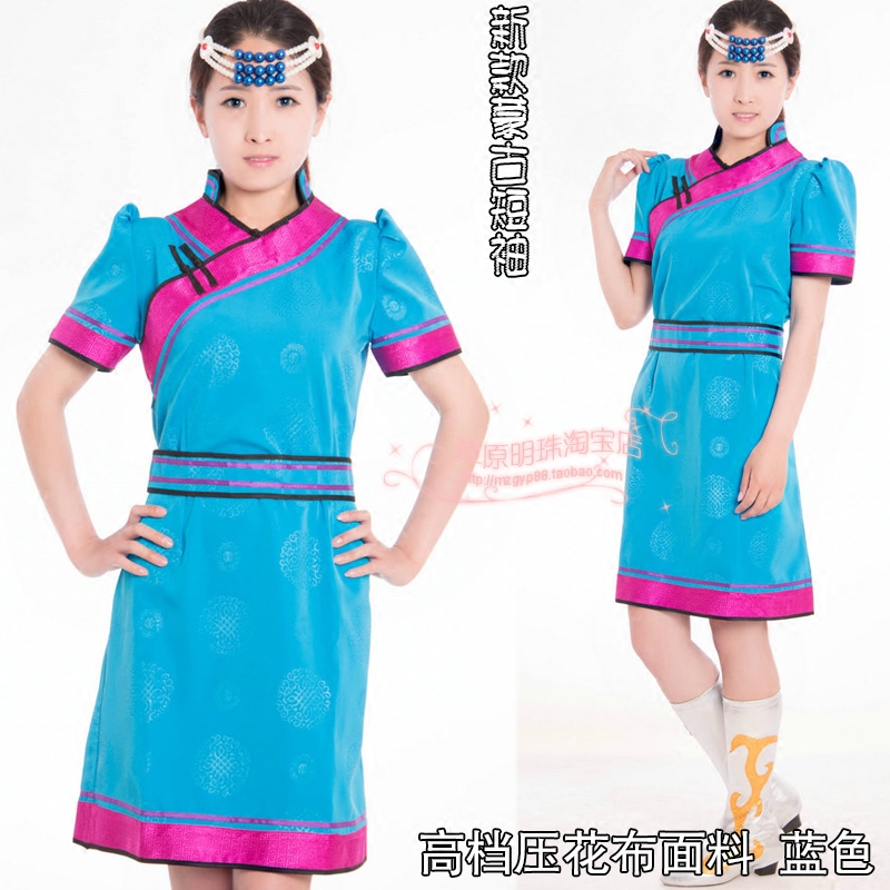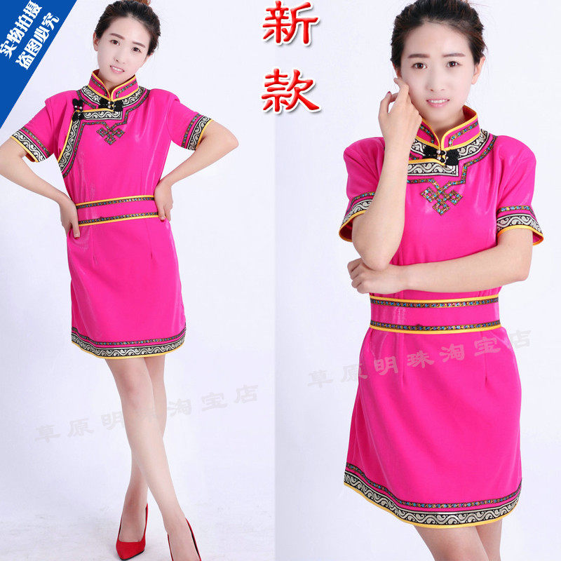 夏季蒙古服裝女士蒙古袍短袖生活裝日常服酒店服務(wù)員工服女裝成人