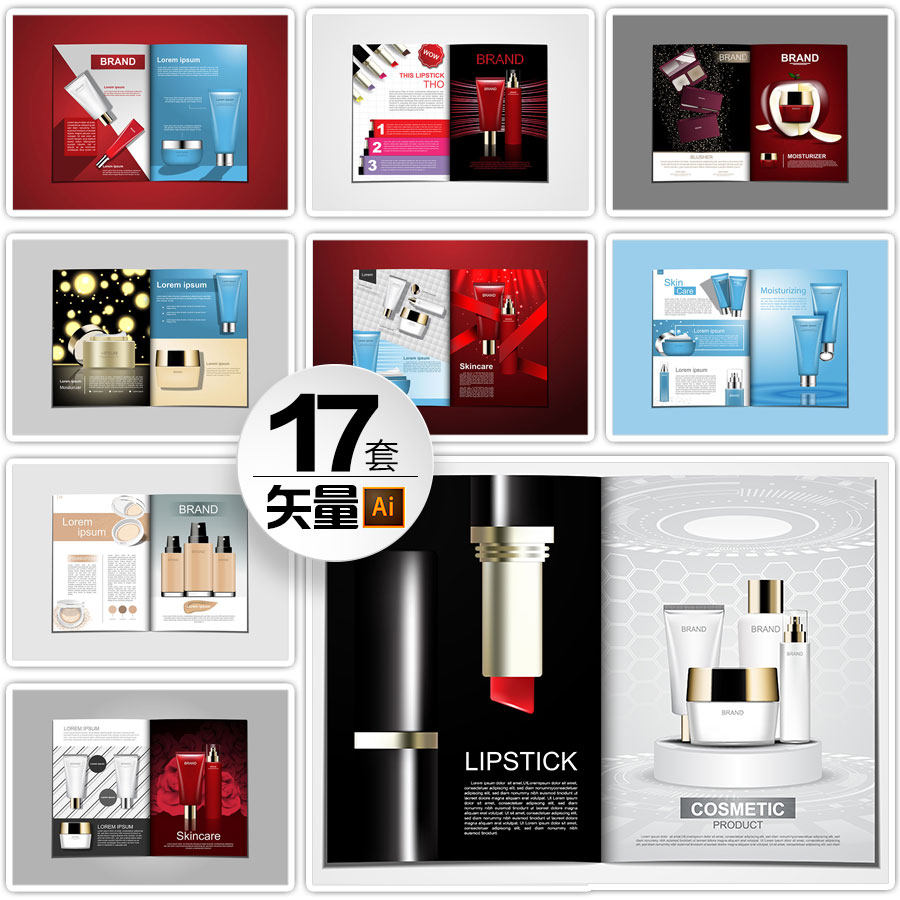美容護(hù)膚化妝品粉餅宣傳手冊沛圖冊插畫ai矢量平面設(shè)計素材圖集