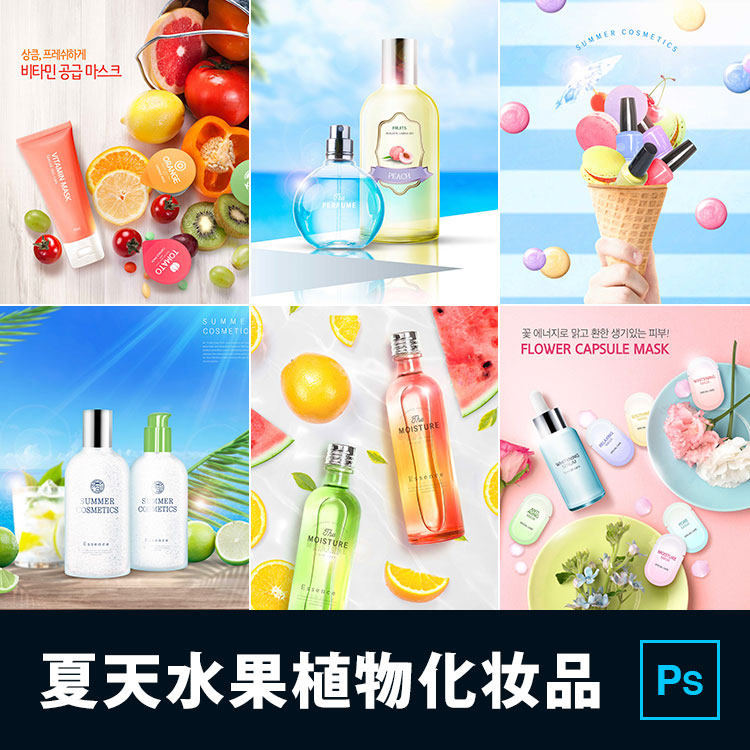 植物水果精華化妝護(hù)膚品美妝補(bǔ)水面膜香水宣傳海報PSD設(shè)計素材
