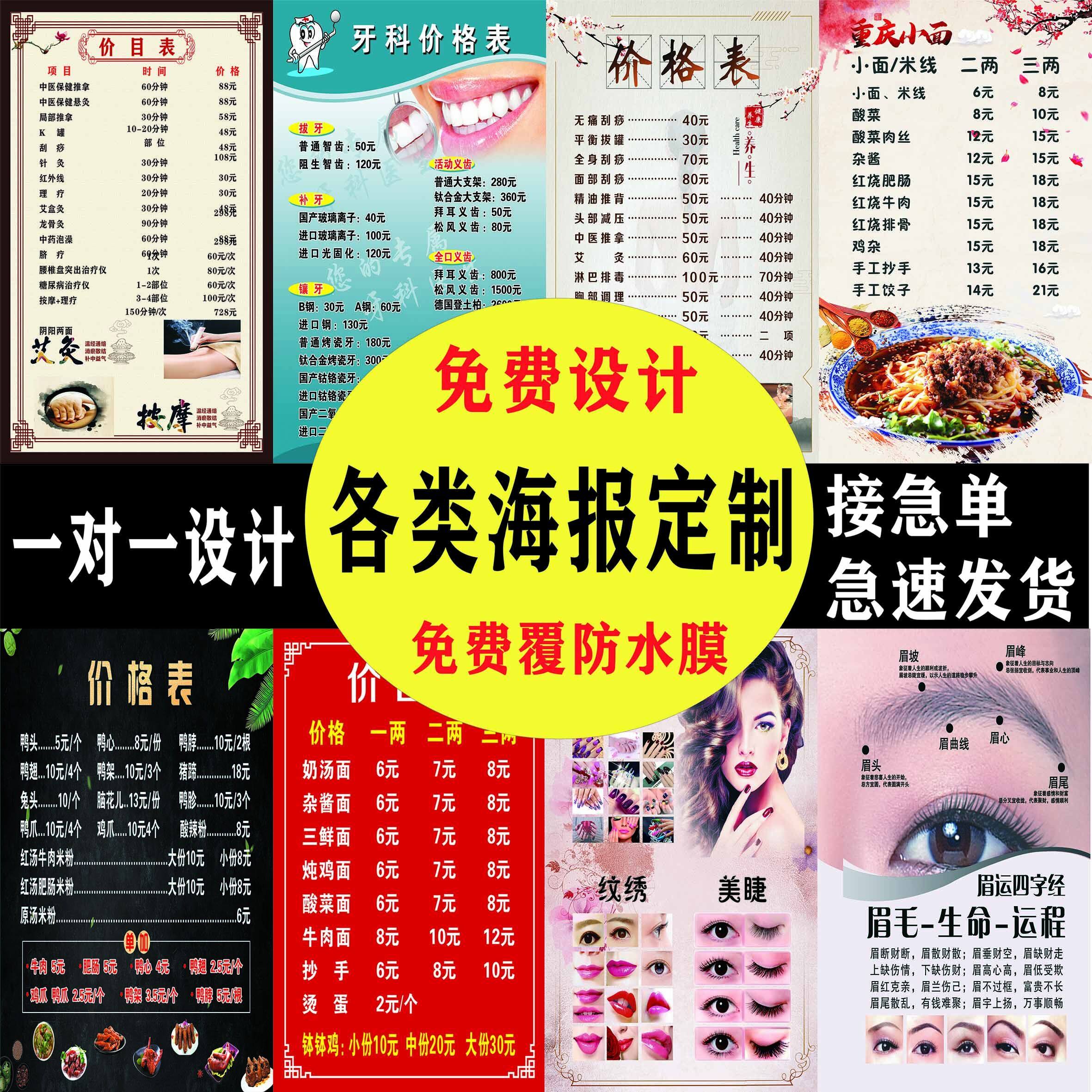 美容院價(jià)目表打印墻貼廣告貼紙宣傳海報(bào)定制價(jià)格表設(shè)計(jì)制作定做