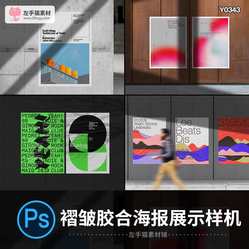 國外高級街頭戶外人物場景POSTER褶皺膠合海報展示樣機(jī)PS設(shè)計素材