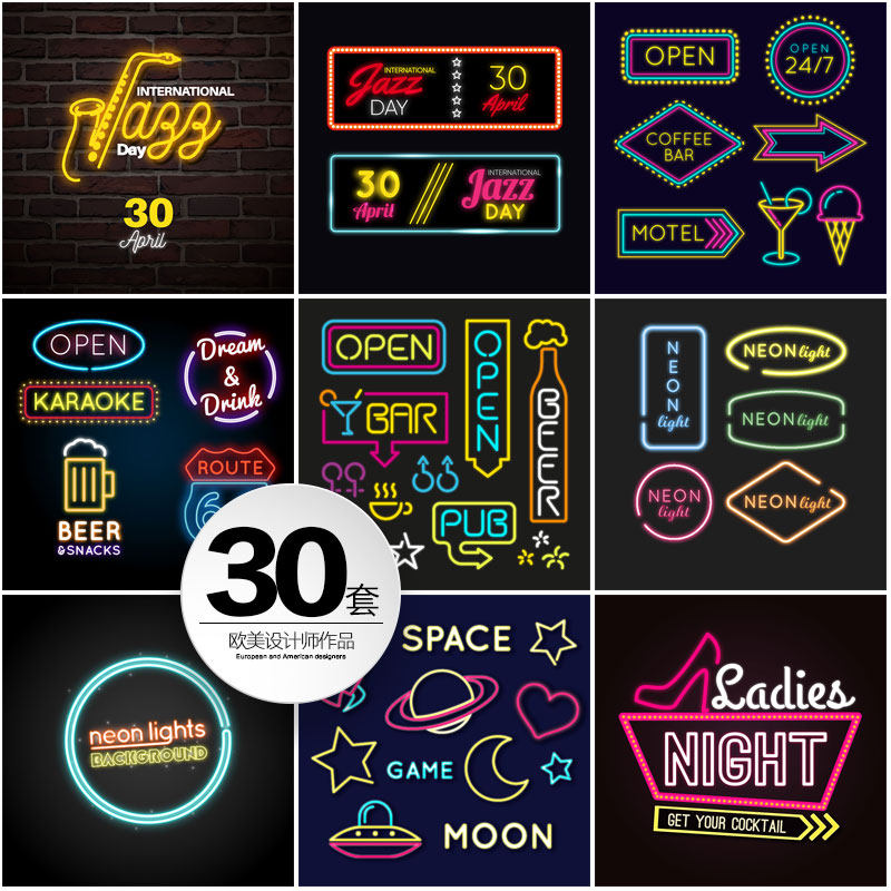 炫彩發(fā)光字店招霓虹燈夜光熒光led招牌指示標(biāo)酒吧ai矢量設(shè)計(jì)素材