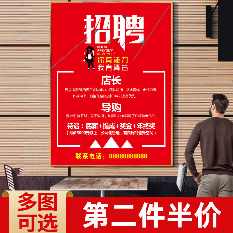 招聘廣告海報設(shè)計服裝房產(chǎn)招聘啟事海報制作招工廣告貼紙信息定制
