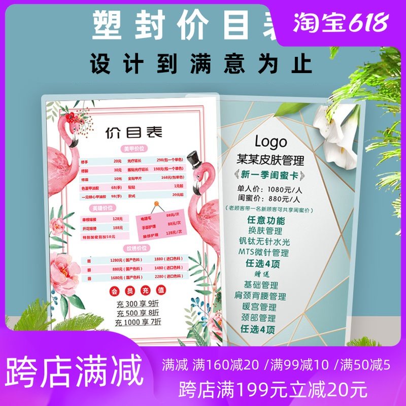 美容院項目價目表美甲美睫價格表塑封擺臺設(shè)計海報定制廣告宣傳畫